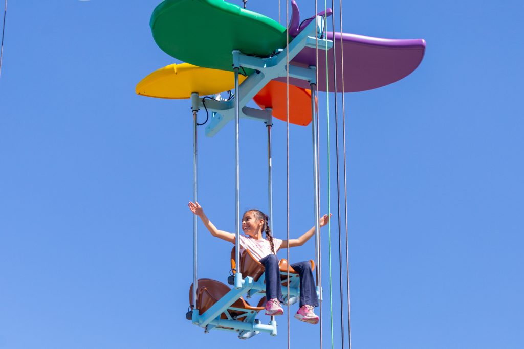 Developed in close collaboration with Morgan’s, the nonprofit enterprise made up of seven distinct businesses centered on inclusion, WingZ of Wonder was created through thoughtful engineering and responsive interactivity. By flapping their arms, passengers can make their gondola rise and fall as the central tower slowly rotates.